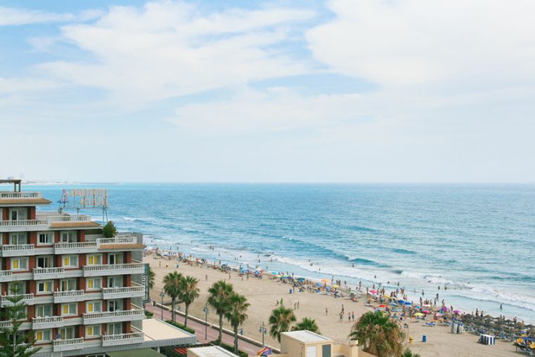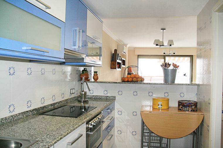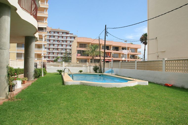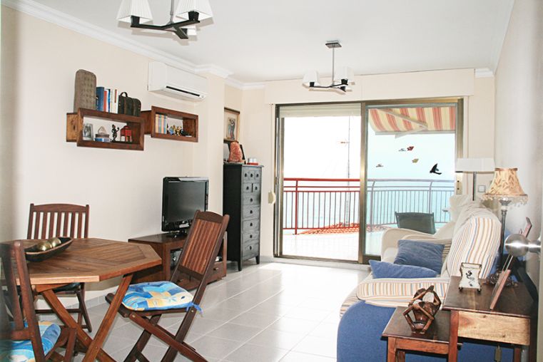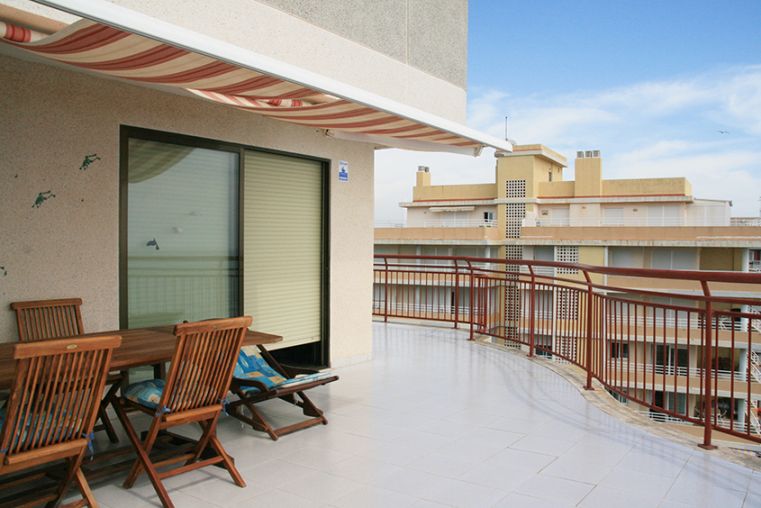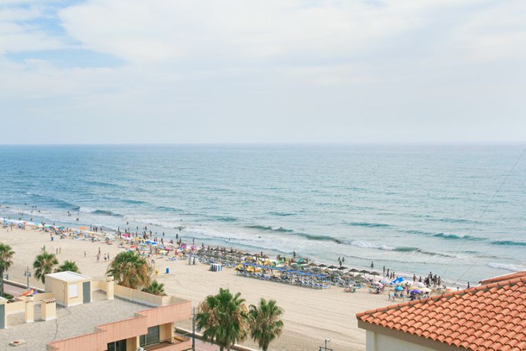 Ático esquinero en segunda línea de playa de 90 m2, 2 Habitaciones, 1 baño, Cocina independiente, armarios empotrados, totalmente amueblado y equipado, aire acondicionado frio/calor, en perfecto estado, parking para 2 vehículos, gran terraza de 95 m2, toldo, jardín y piscina comunitarios, vistas al mar y montaña.