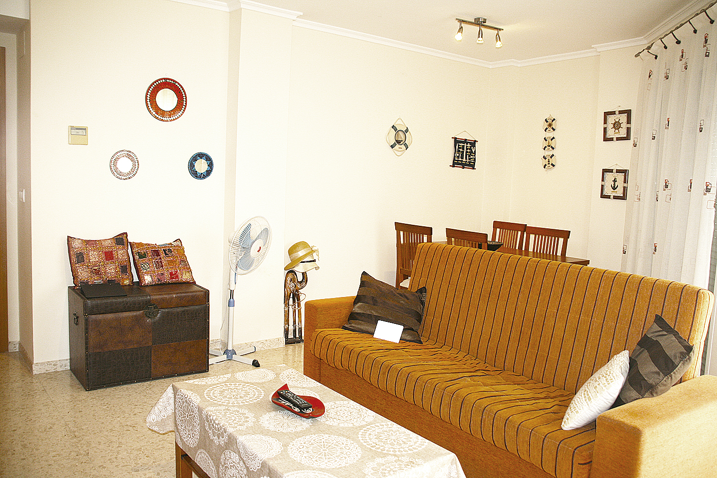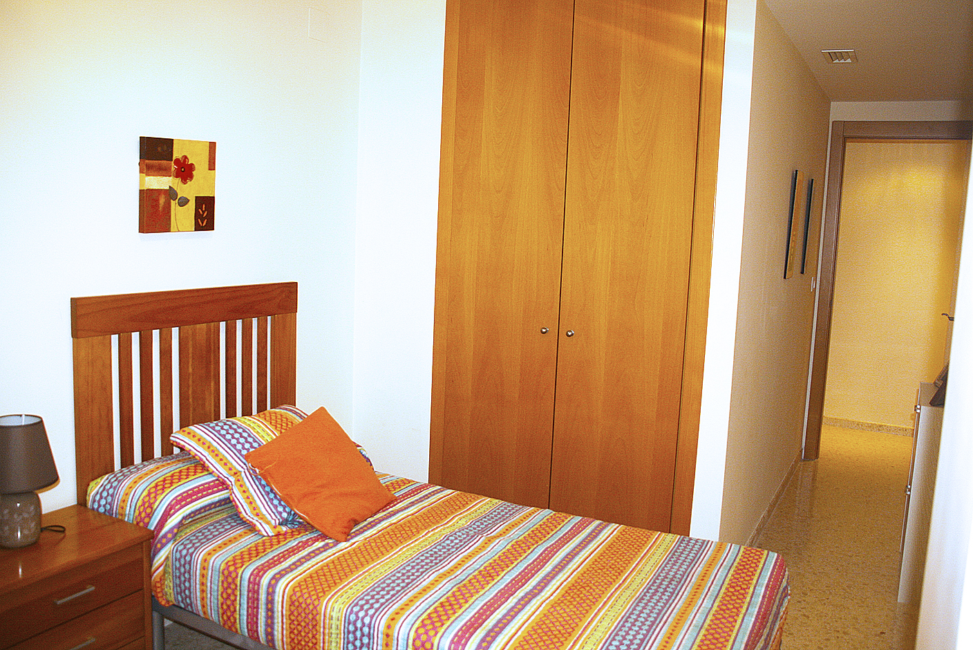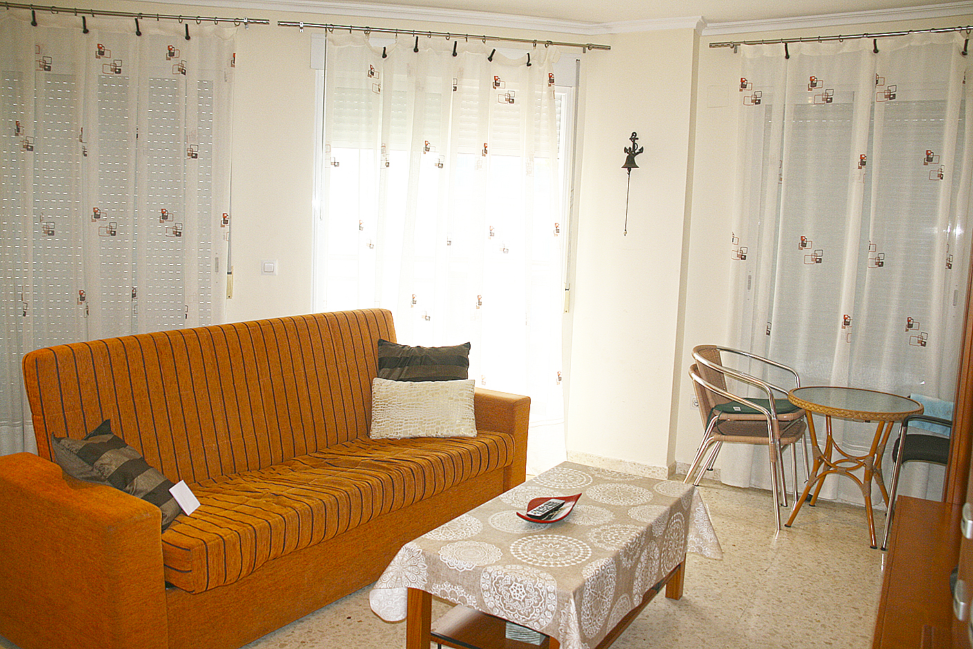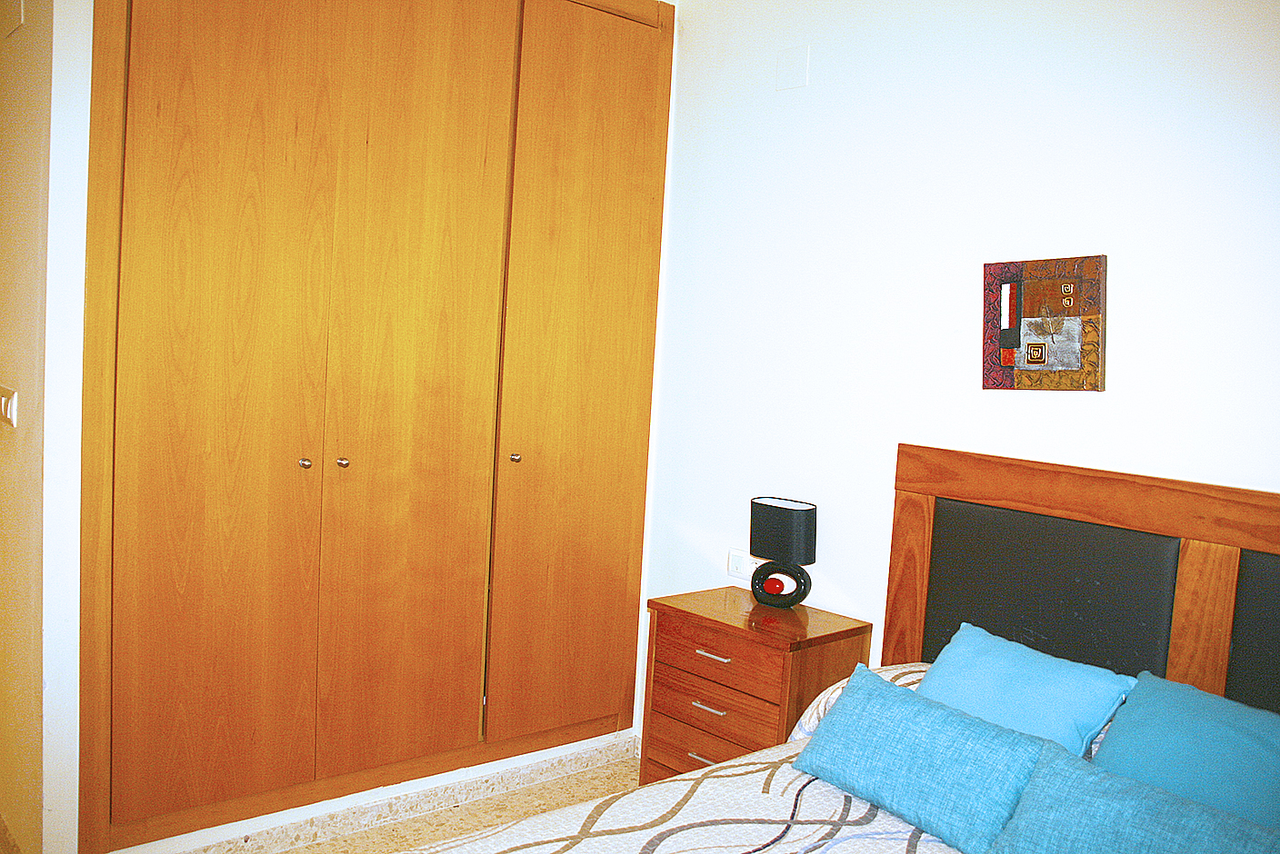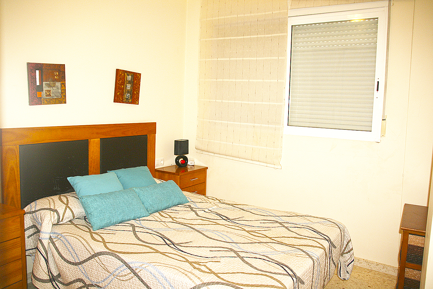 Apartamento esquinero de 80 m2, 2 Habitaciones (una suite), 2 baños, salón, cocina independiente, terraza, completamente amueblado y equipado, ventanas de aluminio con doble cristal, armarios empotrados, aire acondicionado por conducto frio/calor, plaza de parking, lavadero, video portero, ascensor, todo exterior, cerca del centro, en perfecto estado, cerca de la playa.