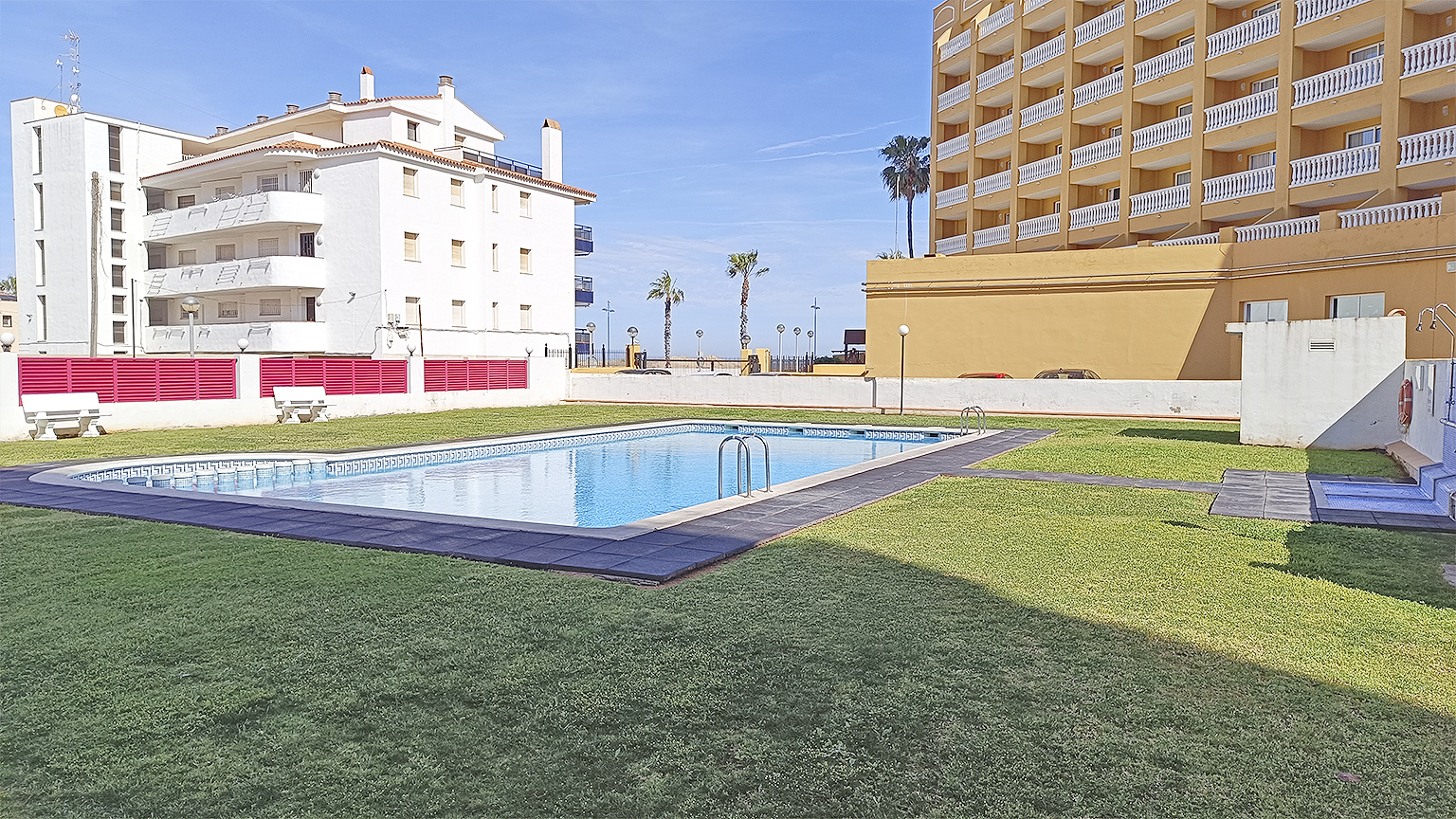 Inmueble de 86 m2 con dos viviendas: Apartamento: 2 Habitaciones, 1 baño, salón, cocina americana, terraza, completamente amueblado y equipado. Loft: Salón dormitorio, cocina americana, baño, ventanas de aluminio con doble cristal, plaza de parking, piscina y jardín comunitario, edificio en segunda línea con ascensor, vista al mar, en perfecto estado, en la playa.